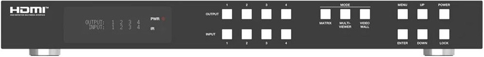 The Ordain’s 18Gbps 4×4 Seamless Matrix is a perfect solution for video transmission from 4 HDMI sources to 4 HDTV displays. It has video wall and multi-viewer functions with multiple display modes. 4×4 IR matrix, audio embedded and de-embedded are also supported. Video resolution is up to 4K@60Hz 4:4:4. Each of the sources can be individually scaled. And seamless switching ensures a smooth picture transition without frame loss. This matrix can be controlled via front panel buttons, IR remote, RS-232 and Web GUI.