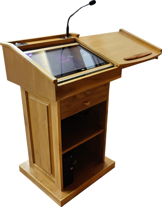 The Ordain Wooden Podium OS-WP-101 is a premium presentation solution that combines classic elegance with modern functionality. Expertly crafted from high-quality Teak and Rubber Wood, this podium serves as a commanding centrepiece for auditoriums, conference halls, and lecture theatres.